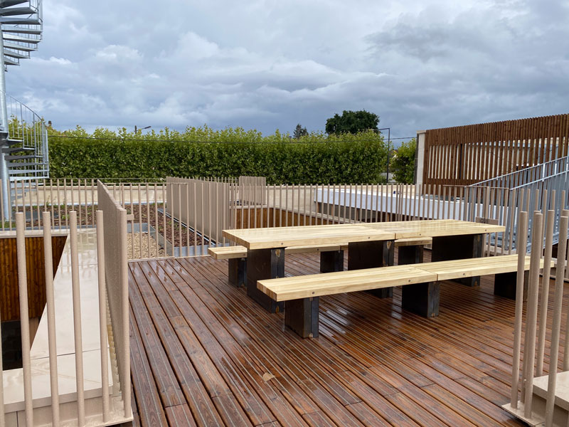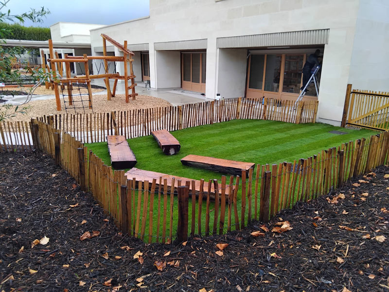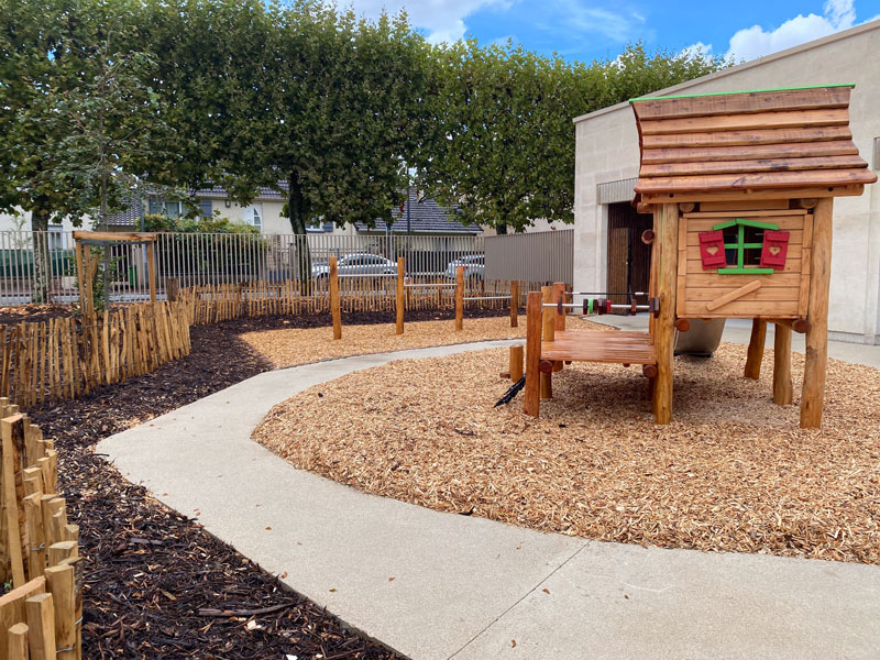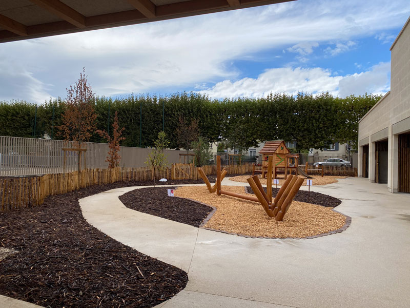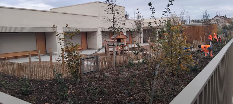Ce projet ambitieux a permis de concevoir des espaces extérieurs végétalisés, pensés pour le bien‑être des enfants et l’intégration de la nature au cœur de l’école.
