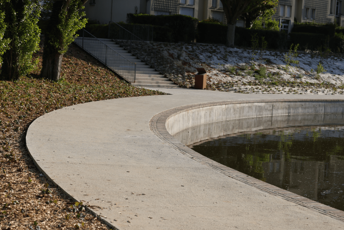 Enfin, la pierre de Comblanchien apporte une finition soignée aux ouvrages réalisés. La requalification du parc du Grand Bassin à Lognes conjugue esthétique, durabilité et cohérence d’ensemble.